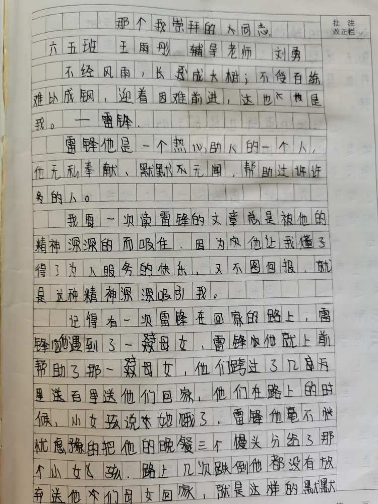 那个我崇拜的同志 热438 类别:写人 发表时间:2021-09-12 07:39 已有 439 次阅读 指导老师:刘勇 所属学校:中牟县平安路学校
