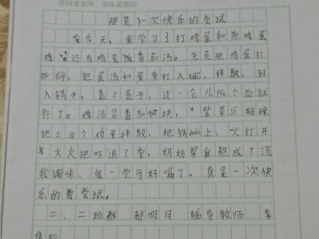 那是一次尝试 热420 类别:状物 发表时间:2021-09-12 18:53 已有 421 次阅读 指导老师:李伟玲 所属学校:中牟县平安路学校
