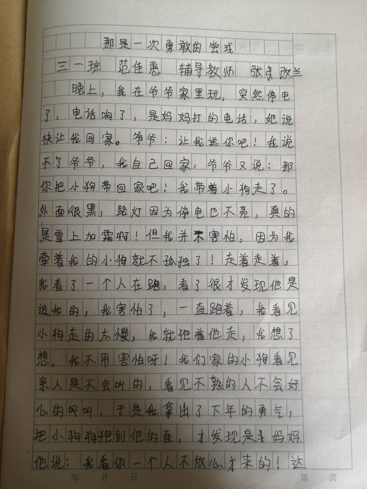 那是一次勇敢的尝试 热681 类别:记叙 发表时间:2021-09-12 10:26 已有 682 次阅读 指导老师:张改兰 所属学校:中牟县平安路学校