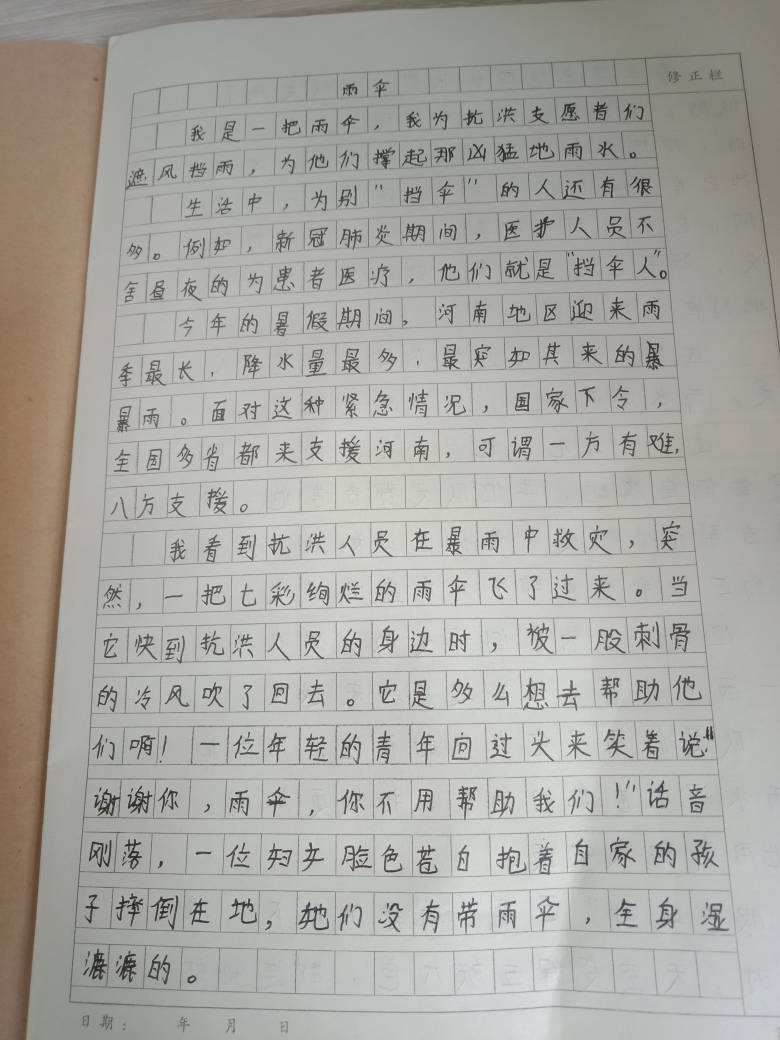 雨伞 热231 类别:记叙 发表时间:2021-09-14 09:56 已有 232 次阅读 指导老师:路月霞 所属学校:中牟县紫薇路中学