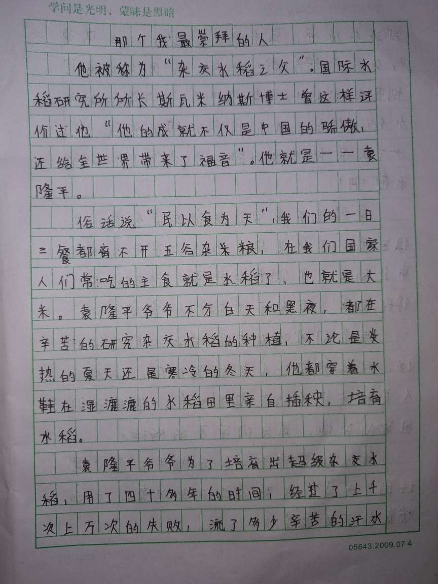 那个我最崇拜的人 热1281 类别:记叙 发表时间:2021-09-12 12:40 已有 1282 次阅读 指导老师:刘珂 所属学校:中牟县平安路学校
