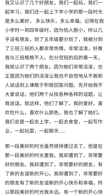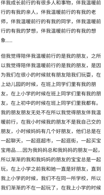 朋友伴我温暖前行 热666 类别:记叙 发表时间:2021-09-12 13:55 已有 667 次阅读 指导老师:王柯 所属学校:中牟县平安路学校