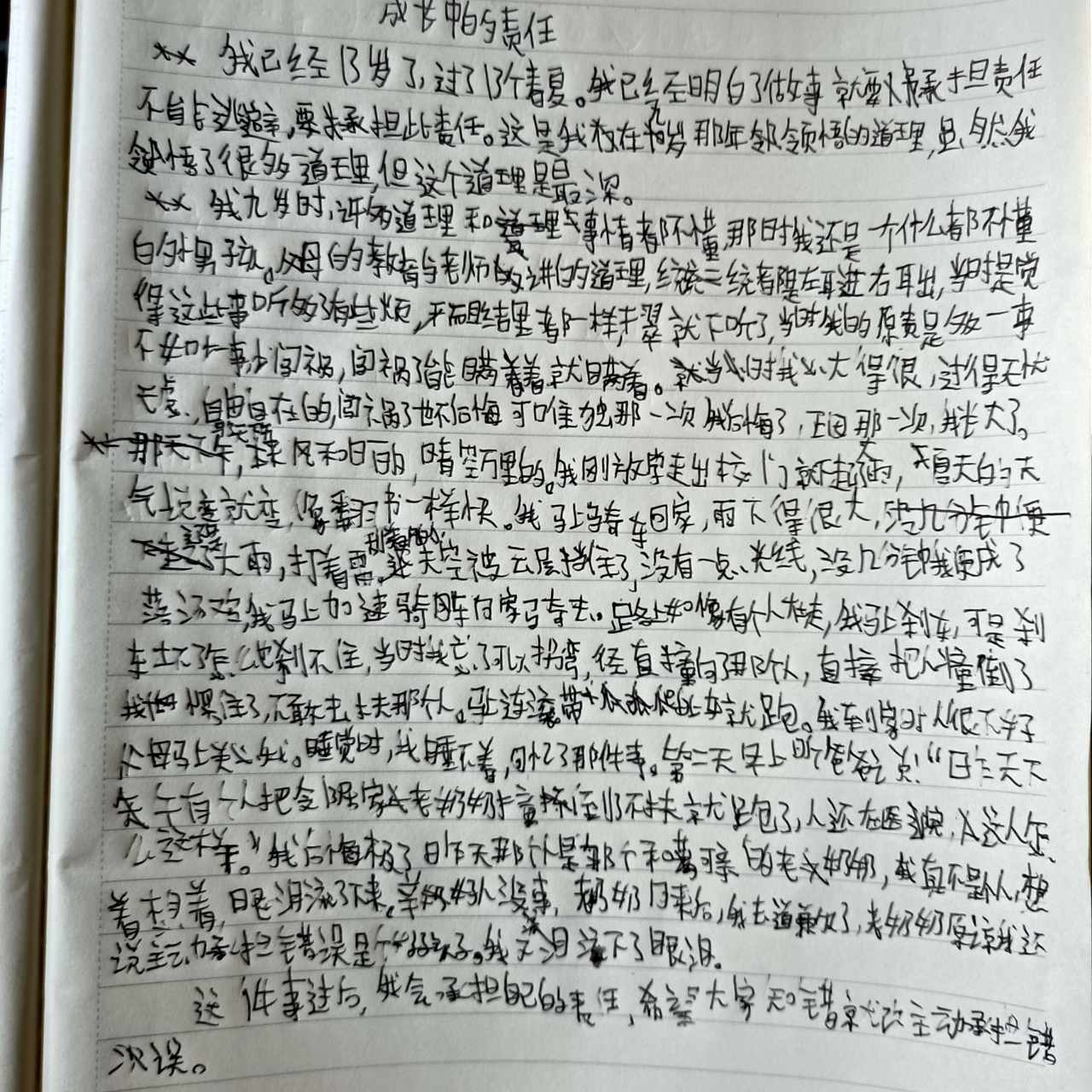 成长中的责任 热1372 类别:叙事 发表时间:2021-09-12 15:50 已有 1373 次阅读 指导老师:潘玉莹 所属学校:中牟县紫薇路中学