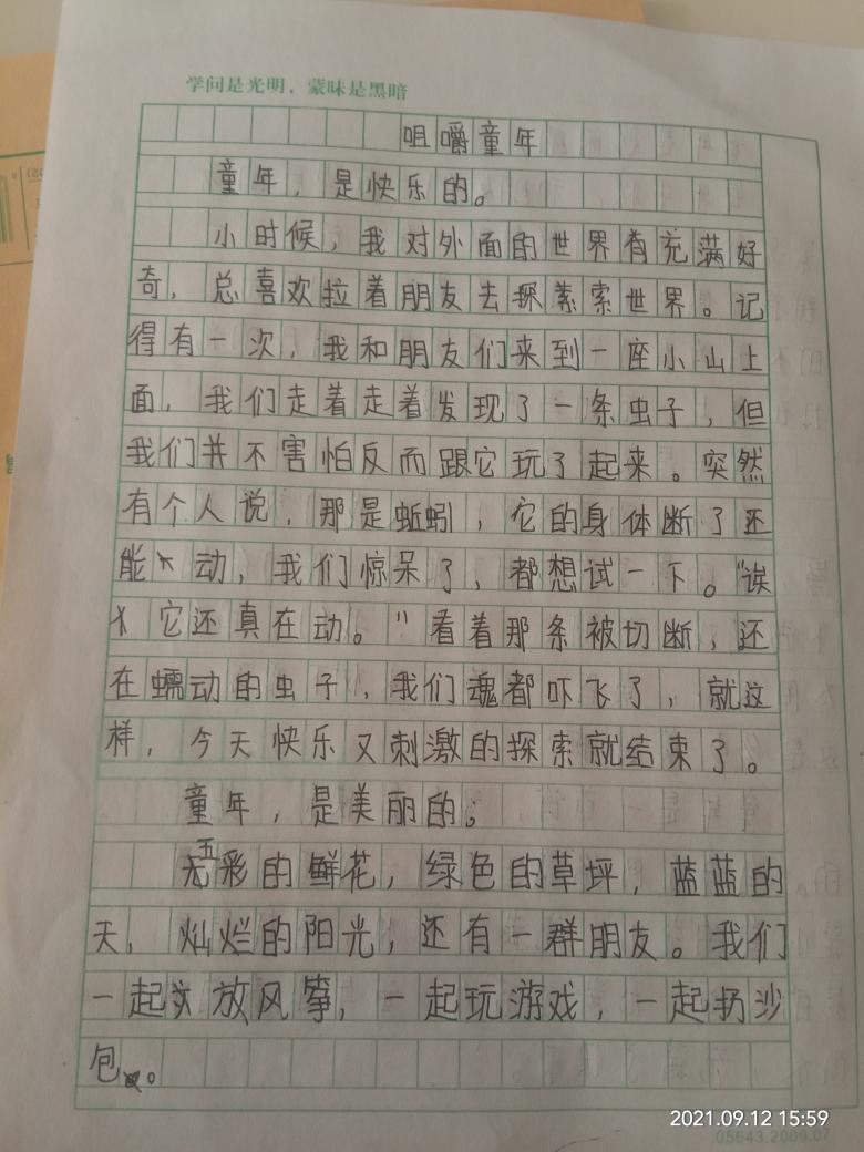 咀嚼童年 热298 类别:叙事 发表时间:2021-09-12 16:05 已有 299 次阅读 指导老师:刘珂 所属学校:中牟县平安路学校