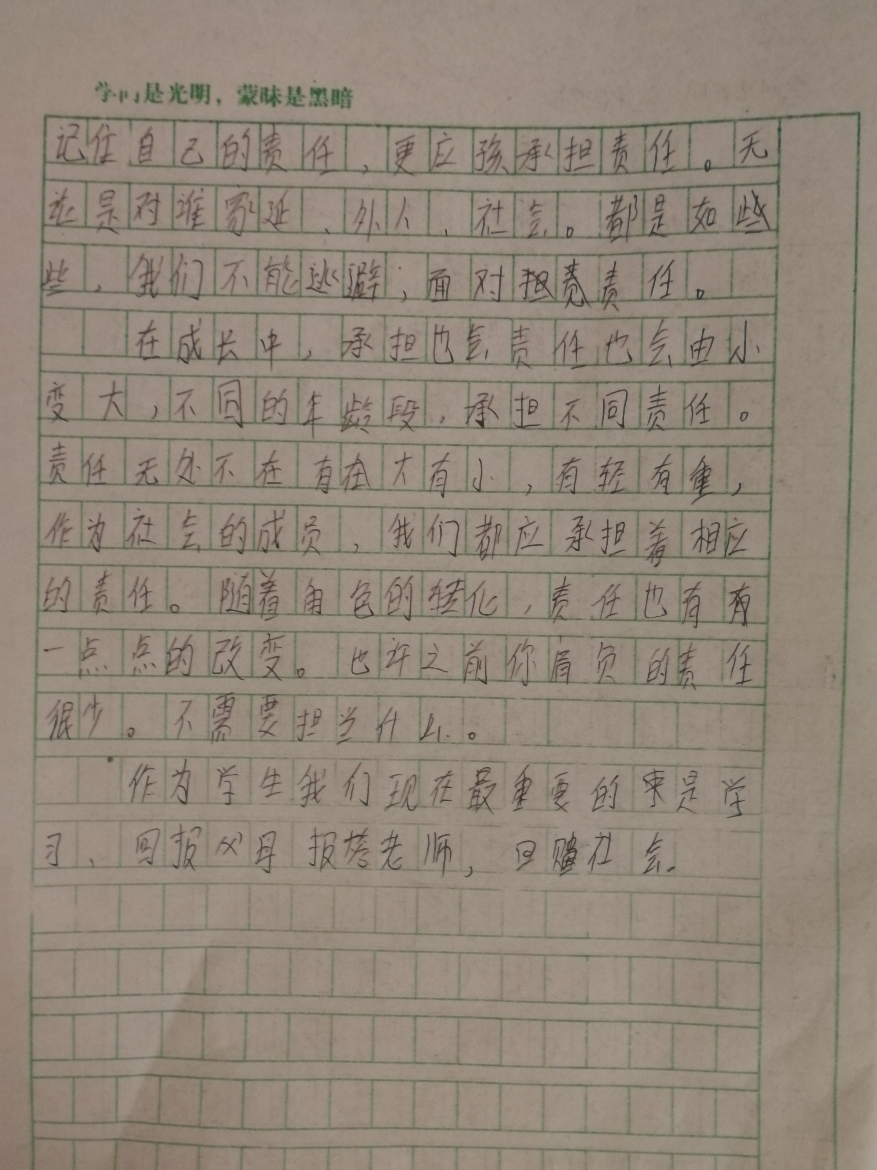 责任 热369 类别:说明 发表时间:2021-09-12 17:18 已有 370 次阅读 指导老师:徐凤霞 所属学校:中牟县紫薇路中学