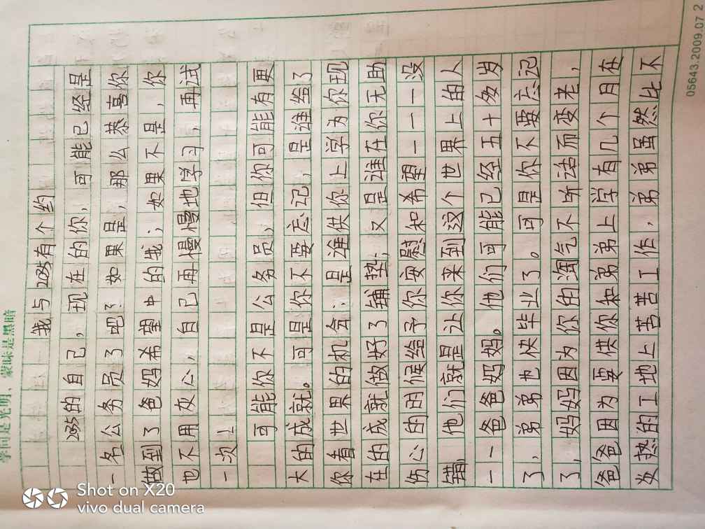 版权说明: A类权限 我谨保证我是此作品的著作权人,并且此作品系首发于郑州教育信息网作文博览频道。我同意郑州教育信息网作文博览频道作为此作品版权的独占代理人。在撤销本委托之前,我不再将此作品投给其他媒体,有关此作品发表和转载等任何事宜,由郑州教育信息网作文博览频道全权负责。未经郑州教育信息网作文博览频道转授权,其他媒体一律不得转载。 |