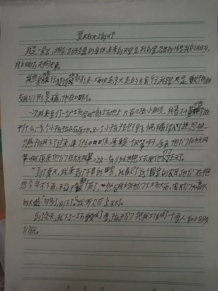飘在天上的日子 热307 类别:其他 发表时间:2021-09-13 15:38 已有 308 次阅读 指导老师:李自伟 所属学校:中牟县紫薇路小学