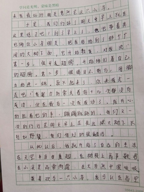 版权说明: A类权限 我谨保证我是此作品的著作权人,并且此作品系首发于郑州教育信息网作文博览频道。我同意郑州教育信息网作文博览频道作为此作品版权的独占代理人。在撤销本委托之前,我不再将此作品投给其他媒体,有关此作品发表和转载等任何事宜,由郑州教育信息网作文博览频道全权负责。未经郑州教育信息网作文博览频道转授权,其他媒体一律不得转载。 |