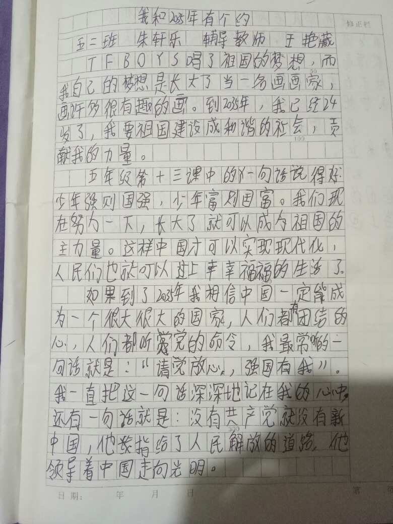 我和2035有个约 热673 类别:叙事 发表时间:2021-09-14 17:34 已有 674 次阅读 指导老师:王艳藏 所属学校:中牟县平安路学校