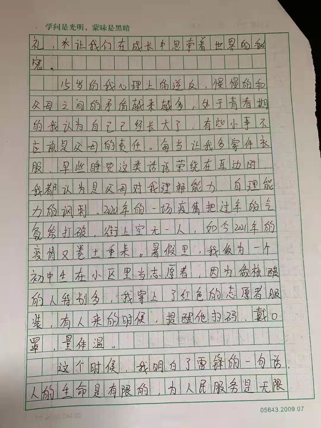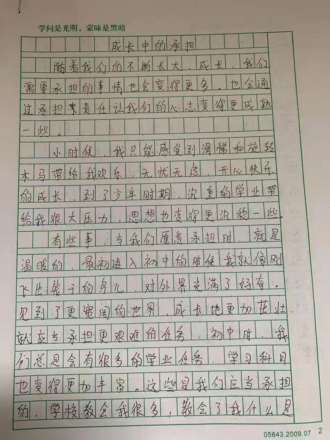 成长中的承担 热189 类别:写人 发表时间:2021-09-14 09:44 已有 190 次阅读 指导老师:徐月丽 所属学校:中牟县紫薇路中学
