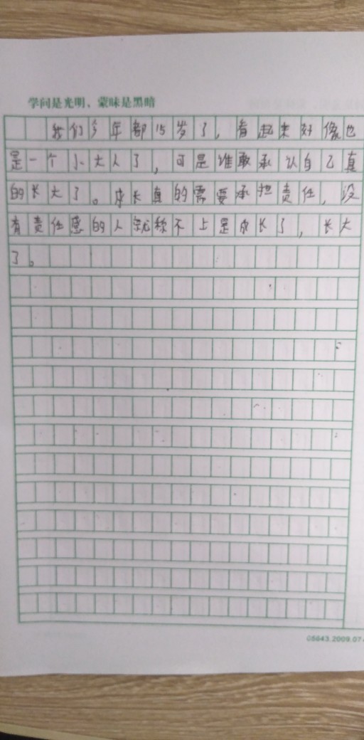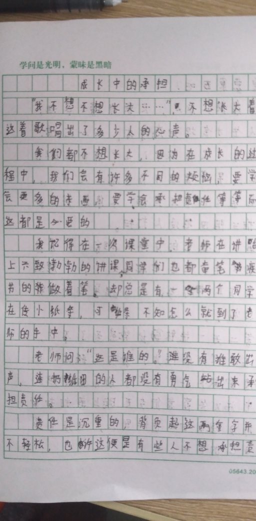 成长中的承担 热142 类别:记叙 发表时间:2021-09-14 09:25 已有 143 次阅读 指导老师:徐月丽 所属学校:中牟县紫薇路中学