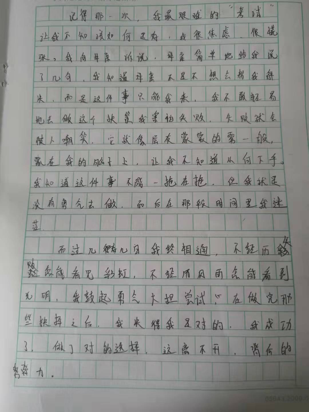 我通过了那场考试 热586 类别:抒情 发表时间:2021-09-14 09:53 已有 587 次阅读 指导老师:路月霞 所属学校:中牟县紫薇路中学