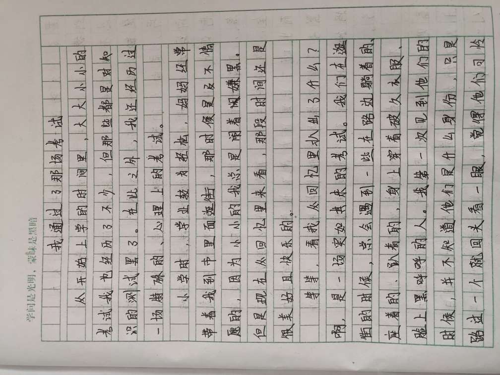 我通过了那场考试 热199 类别:记叙 发表时间:2021-09-14 09:41 已有 200 次阅读 指导老师:周剑 所属学校:中牟县紫薇路中学