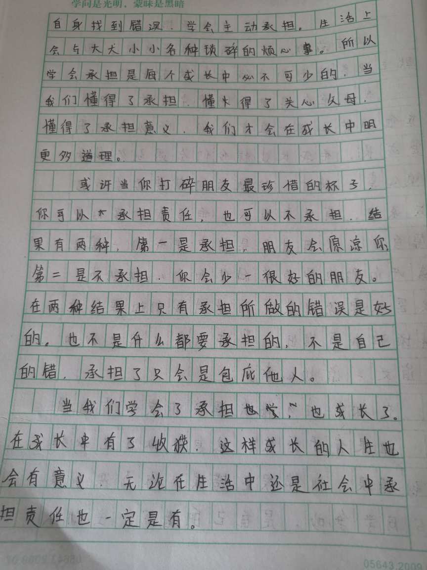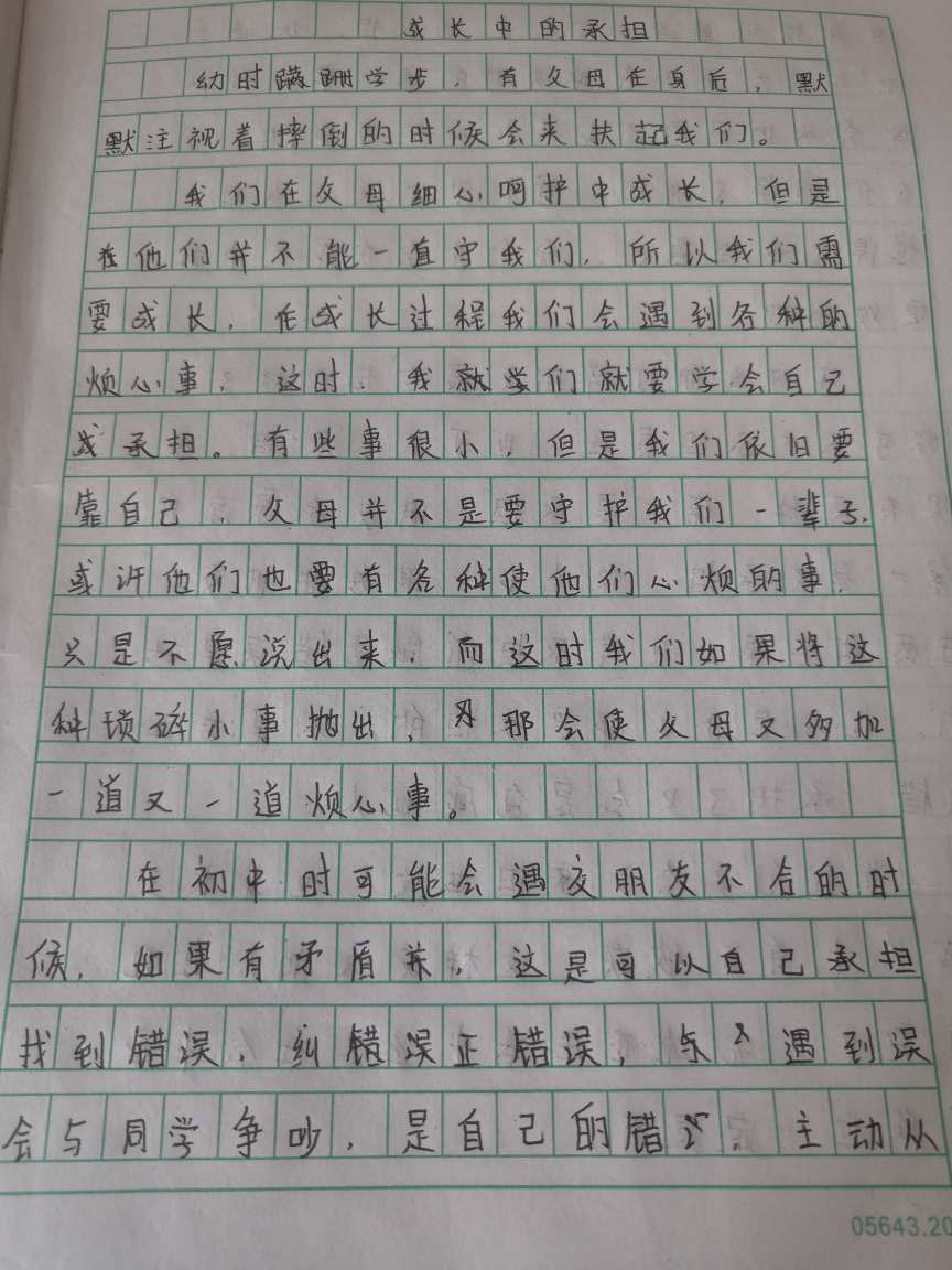 成长中的承担 热593 类别:记叙 发表时间:2021-09-14 12:49 已有 594 次阅读 指导老师:周剑 所属学校:中牟县紫薇路中学