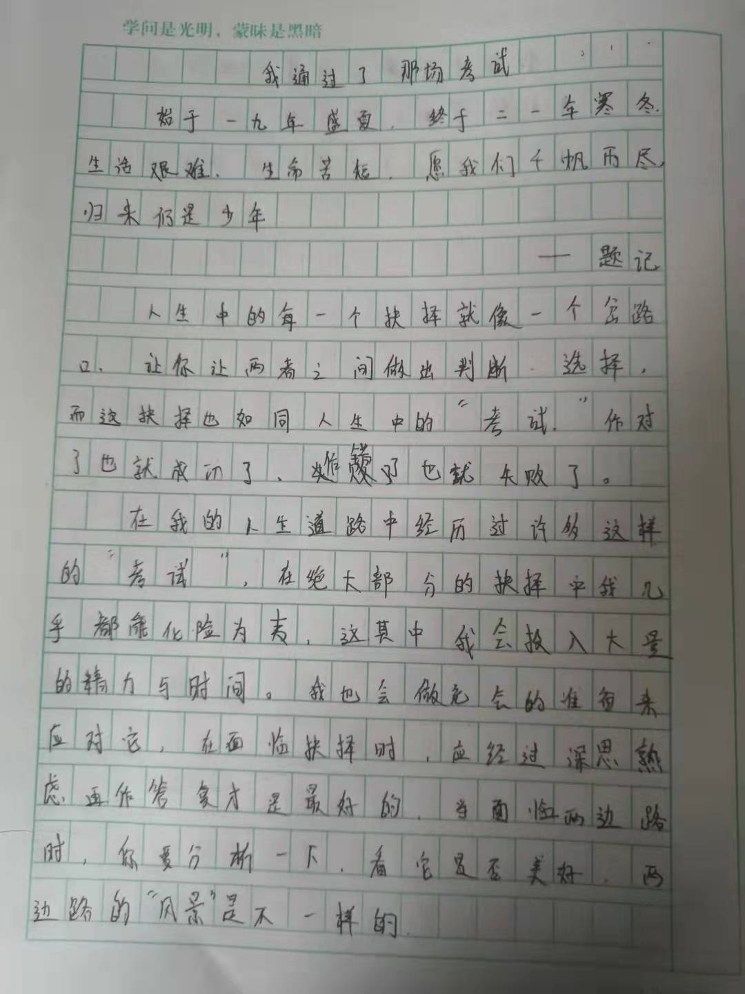 我通过了那场考试 热240 类别:记叙 发表时间:2021-09-14 09:57 已有 241 次阅读 指导老师:徐月丽 所属学校:中牟县紫薇路中学