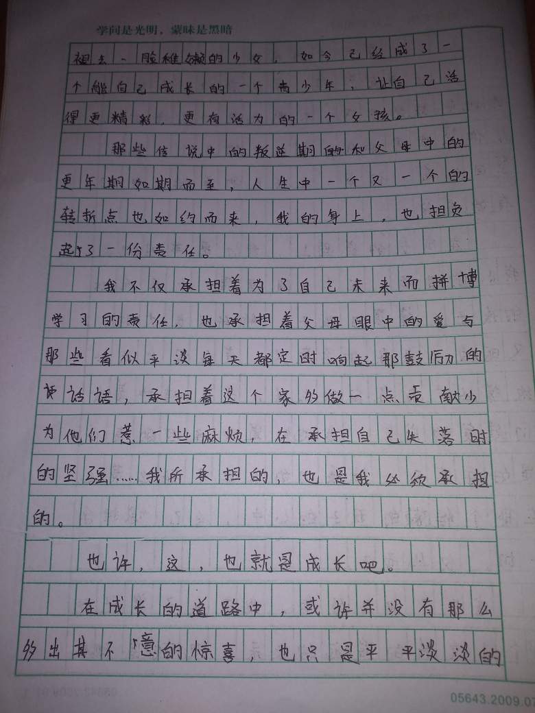 成长中的承担 热672 类别:其他 发表时间:2021-09-14 10:14 已有 673 次阅读 指导老师:徐月丽 所属学校:中牟县紫薇路中学