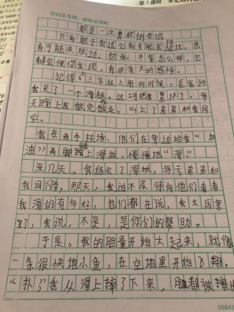 那是一次勇敢的尝 热413 类别:叙事 发表时间:2021-09-14 14:29 已有 414 次阅读 指导老师:慕玲玲 所属学校:中牟县平安路学校