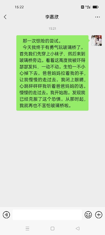 那一次惊险的尝试 热589 类别:写人 发表时间:2021-09-15 15:23 已有 590 次阅读 指导老师:李新杰 所属学校:中牟县城东路小学