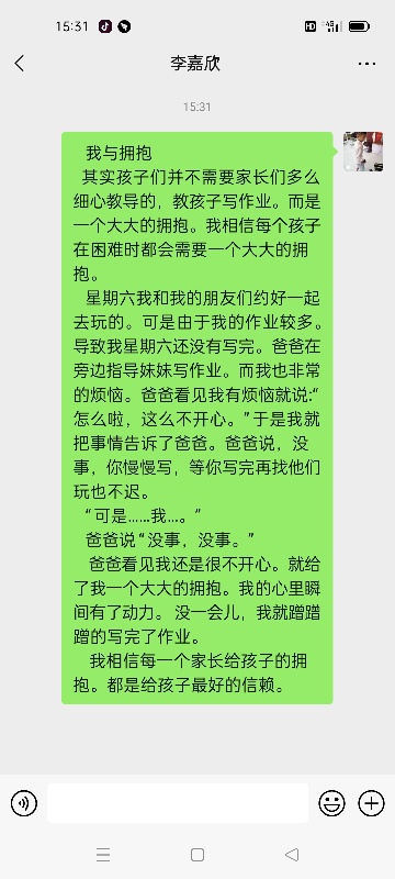 我与拥抱 热768 类别:抒情 发表时间:2021-09-15 15:32 已有 769 次阅读 指导老师:李新杰 所属学校:中牟县城东路小学