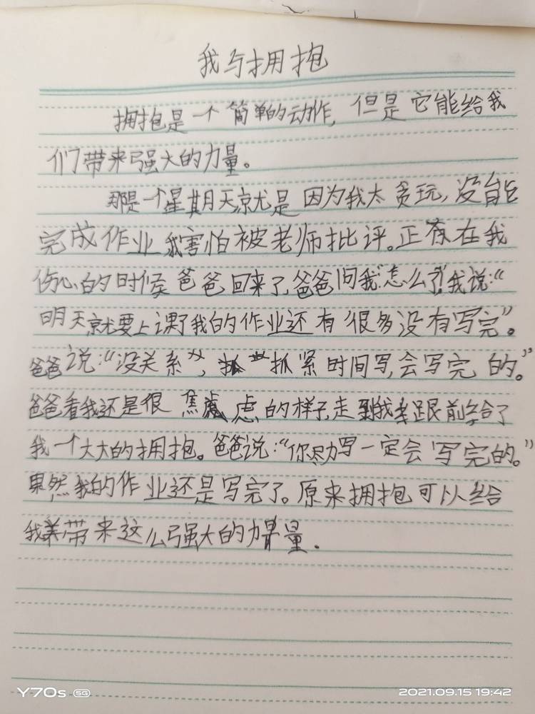 我与拥抱 热614 类别:抒情 发表时间:2021-09-15 19:43 已有 615 次阅读 指导老师:乔新娟 所属学校:中牟县姚家镇中心小学