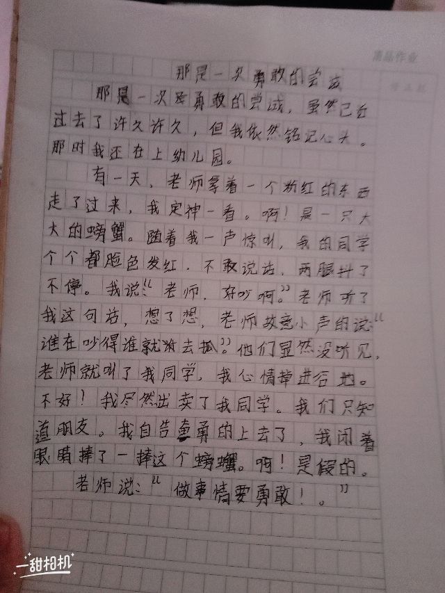 那是一次勇敢的尝试 热757 类别:记叙 发表时间:2021-09-15 11:31 已有 758 次阅读 指导老师:赵杏利 所属学校:中牟县大学路小学