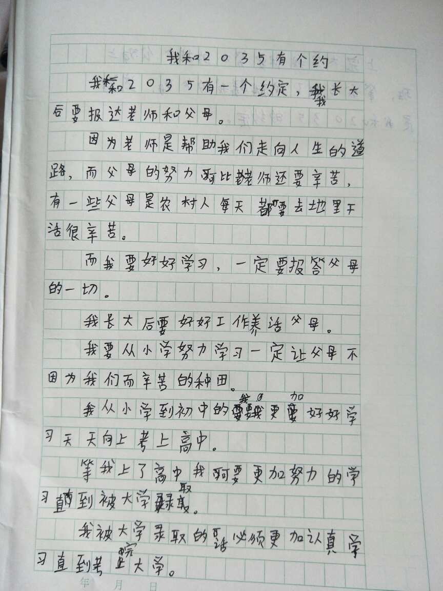我和2035有个约 热768 类别:记叙 发表时间:2021-09-15 13:40 已有 769 次阅读 指导老师:吕明哲 所属学校:中牟县姚家镇中心小学