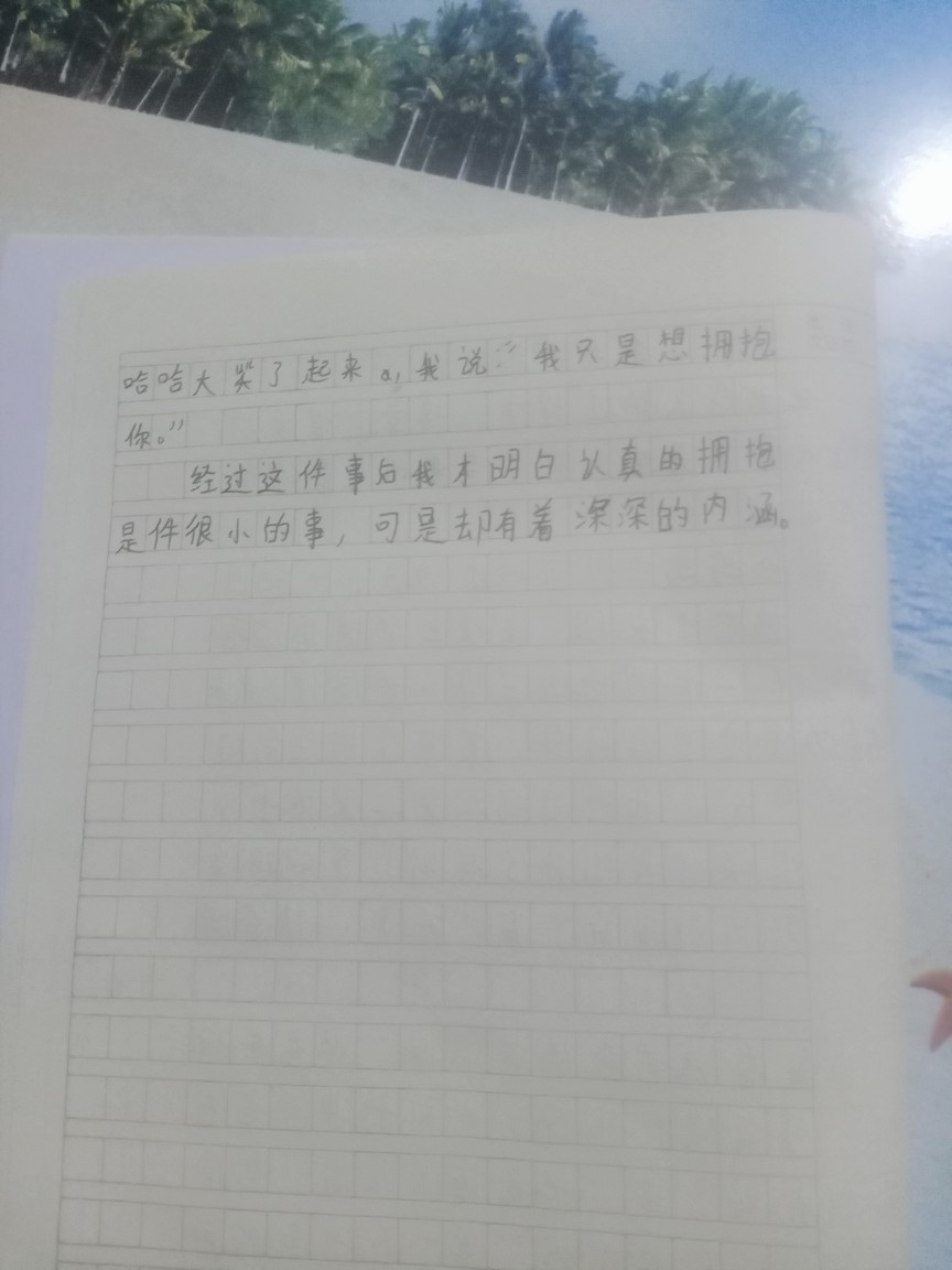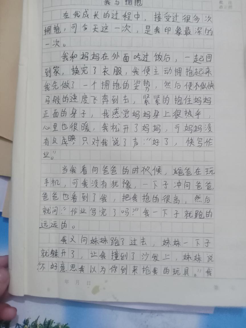 我与拥抱 热421 类别:叙事 发表时间:2021-09-15 20:38 已有 422 次阅读 指导老师:宋红瑞 所属学校:中牟县姚家镇罗宋小学