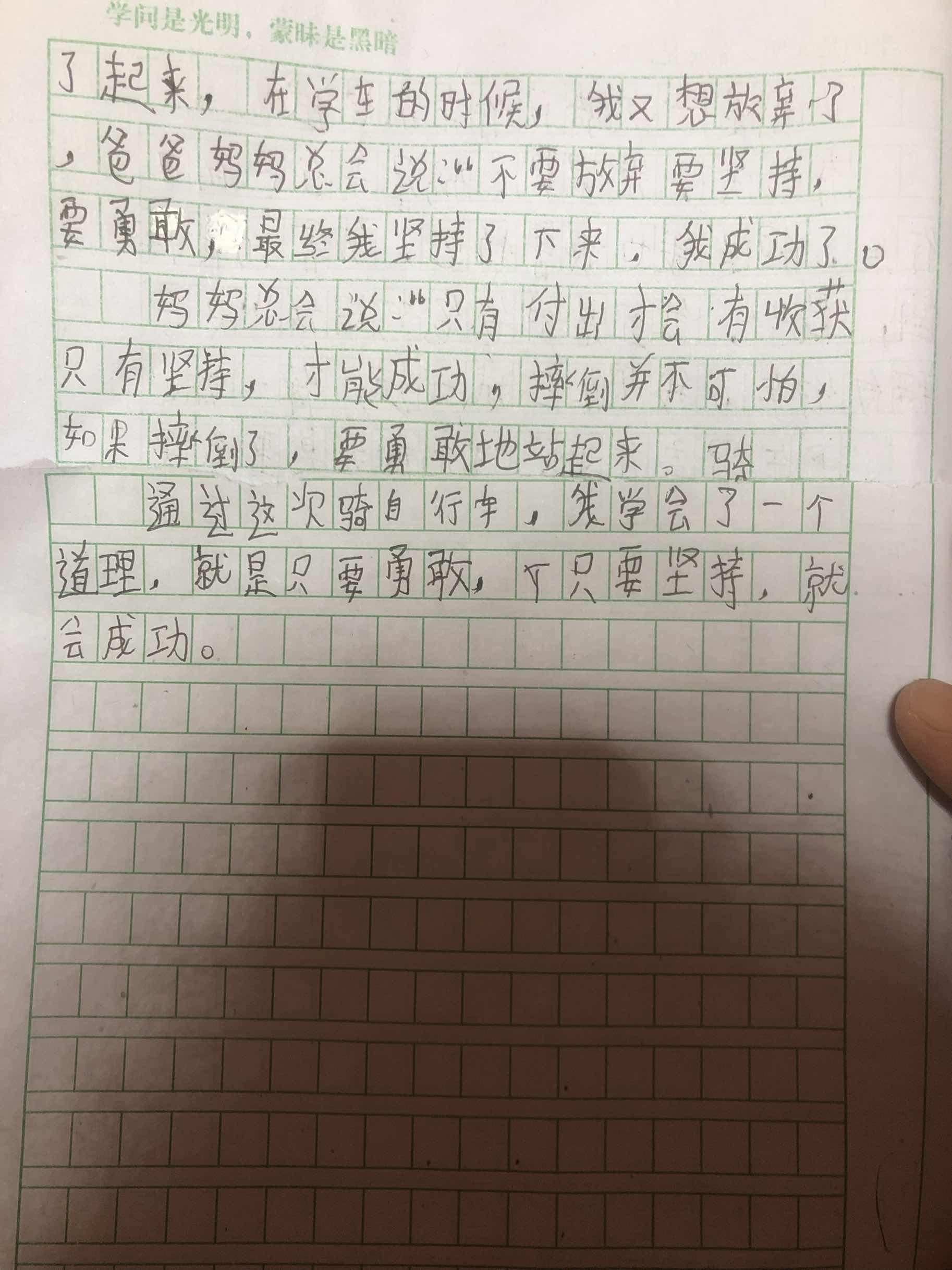 那是一次骑自行车的尝试 热711 类别:叙事 发表时间:2021-09-15 20:52 已有 712 次阅读 指导老师:慕玲玲 所属学校:中牟县大孟镇中心小学